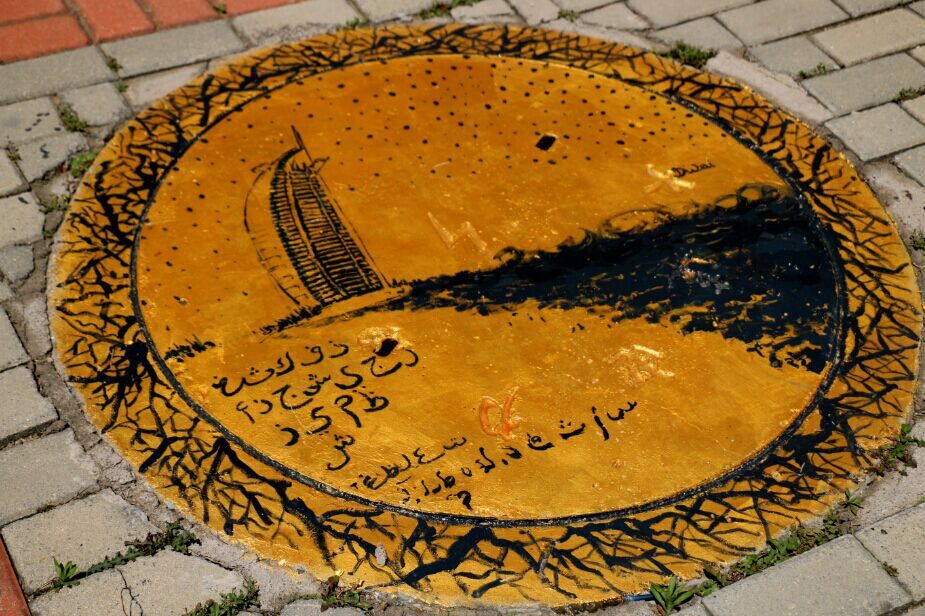 李宇翔同学说:“在画井盖之前,设计团队首先画了25个样稿图。在画的时候也遇到了一些意想不到的情况,比如井盖的形状、材质,创作时的户外天气、光照情况等等制约了绘画颜料的选择,并且和团队预想的效果有很大出入。面对这种情况,设计团队及时做出了调整,经过筛选、修改、反复实验、最终付诸实施才完成今天大家看到的这些作品。”